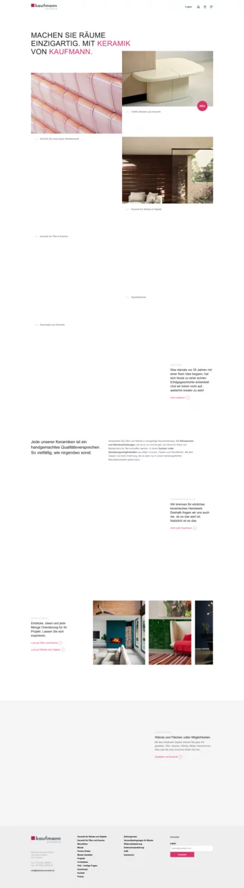Kaufmann Keramik steht für handgefertigte Keramiklösungen „made in Bavaria“ – von Ofenkacheln und Kaminverkleidungen über Wandkeramik bis zu speziellen Objektkeramiken. Jedes Stück wird meisterlich gefertigt und lässt Räume zu etwas Einzigartigem werden.